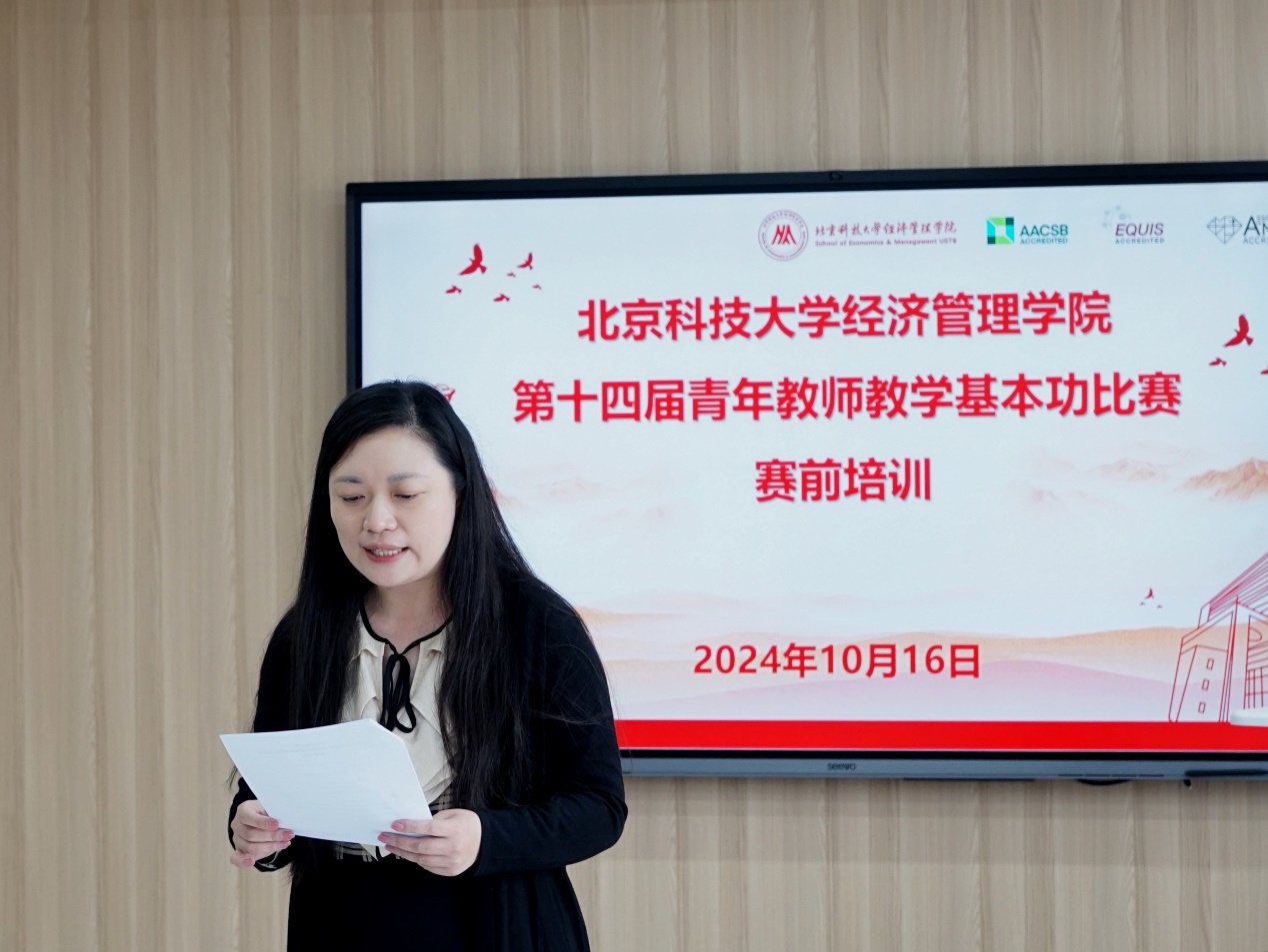 为深入贯彻党的二十大精神,全面落实学校推进教育教学质量提升的要求,锤炼青年教师的教学基本功,探花视频 分工会与教师发展中心于10月16日下午在经管楼1205成功举办了第十四届青年教师教学基本功比赛培训会。学院邀请了北京理工大学管理学院高昂副教授以“青教赛备赛经验交流”为主题作分享,学院副院长范小华、学院党委副书记、副院长、工会主席倪宇和青年教师们参加了赛前培训会,会议由学院教师发展中心主任孙莹主持。