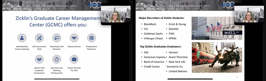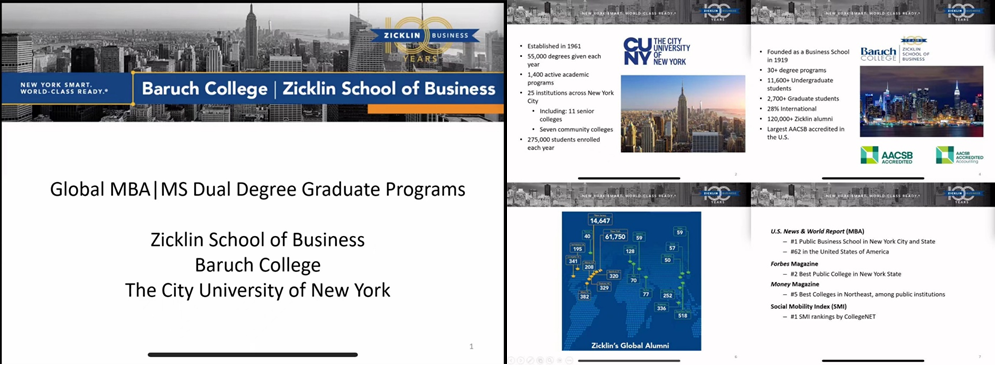 2022年12月14日晚,探花视频 与纽约市立大学巴鲁克分校杰克林商学院合办的硕士双学位项目线上宣讲会顺利举办。宣讲会邀请杰克林商学院研究生项目执行主任HelaineKorn教授和国际项目专员Rong Yan老师进行项目介绍,学院国际合作与交流办公室主任赵霞以及来自学硕和MBA项目的三十余名学生参与了此次宣讲。