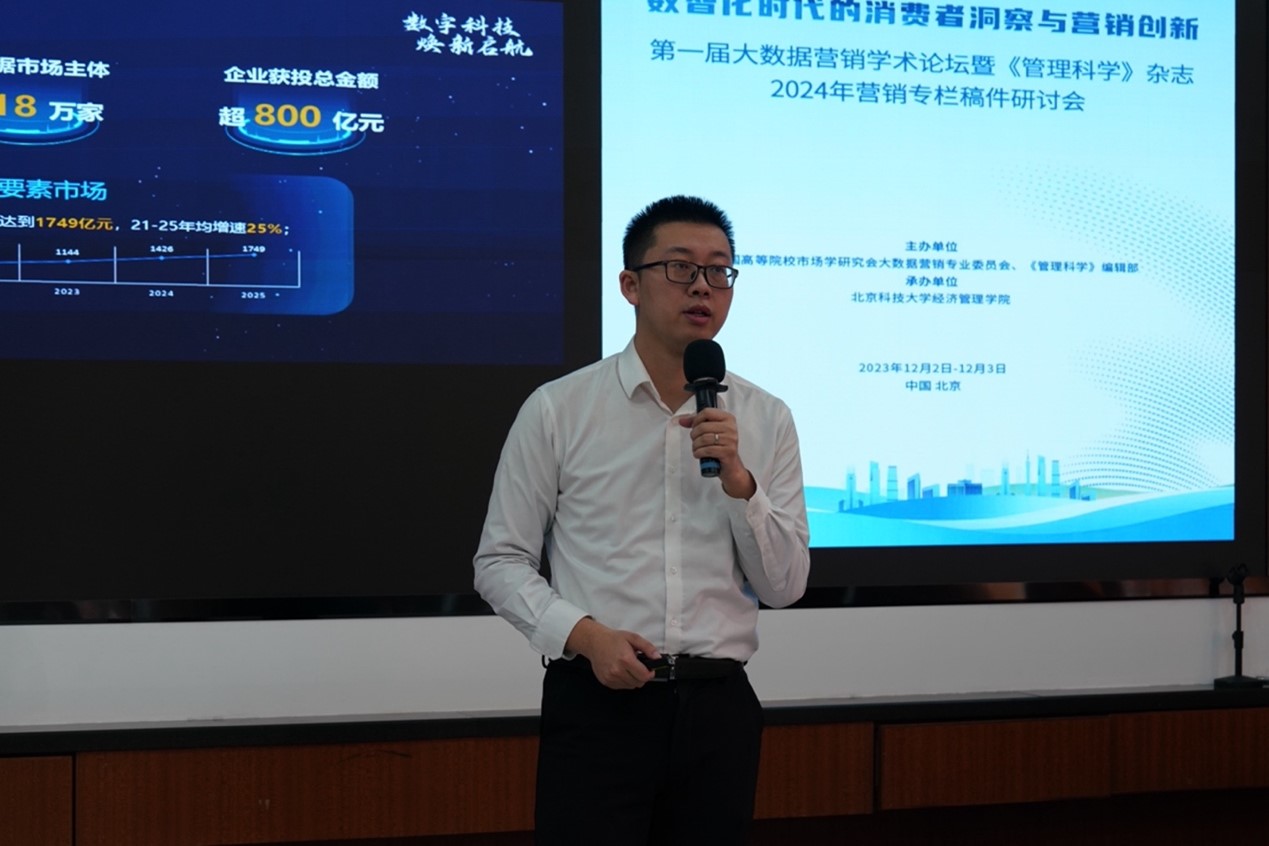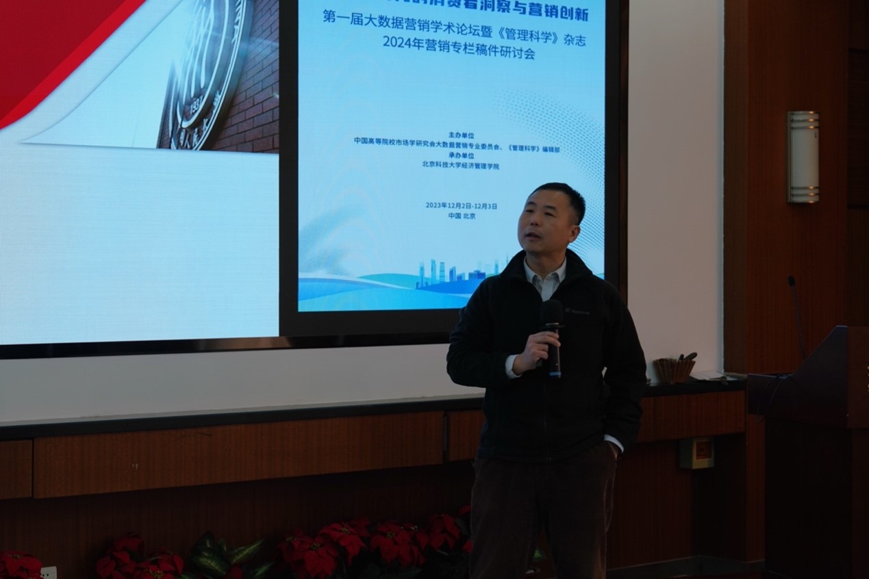 2023年12月2日-3日,第一届大数据营销学术论坛暨《管理科学》杂志2024年营销专栏稿件研讨会在探花视频 召开。本届论坛由中国高等院校市场学研究会大数据营销专业委员会和《管理科学》编辑部联合主办,探花视频 承办。论坛以“数智化时代的消费者洞察与营销创新”为主题,旨在凝聚大数据营销领域的专家、业界人士和青年学者,共同推动数据驱动式营销创新的研究与实践进展,为从事大数据营销教学和研究的同仁提供合作交流的平台。论坛邀请多位国内知名学者和行业专家做主题报告,分享大数据营销领域最前沿的学术及业界成果,共有80余位来自国内40余所高校的专家、学者和学生参会交流。