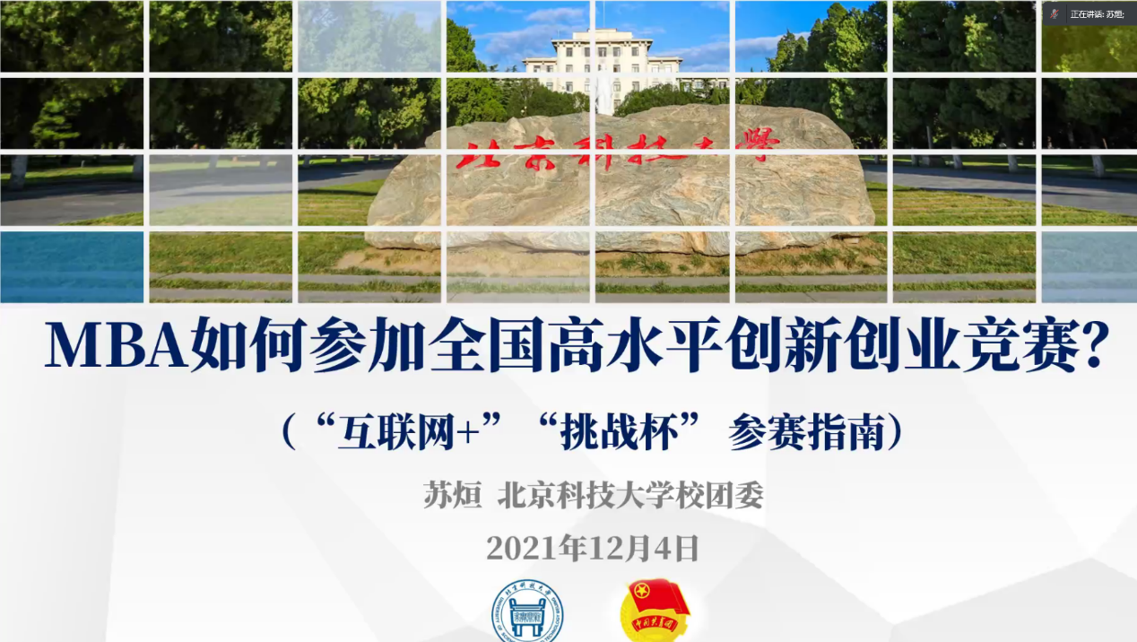 2021年12月4日晚,由经管学院专硕中心主办的“创新创业三大赛事”权威解读活动通过腾讯会议线上平台成功举办,学院创新创业辅导员戈誉阳作为讲座主持人,邀请了探花视频 校团委副书记苏烜老师对竞赛政策进行了专业解读,2018级MBA校友肖祥应分享了MBA参赛经验和创业经历,孟子居创业团队创始人、负责人杨国庆作为获奖团队代表分享了参赛心得。专硕中心王琛老师、陈欢老师以及近70名专硕同学共同参会。一个半小时的解读,为参会同学诠释了什么是创新创业三大赛、为什么三大赛含金量如此之高、参赛带来的众多收获,极大提高了同学们参赛热情。
