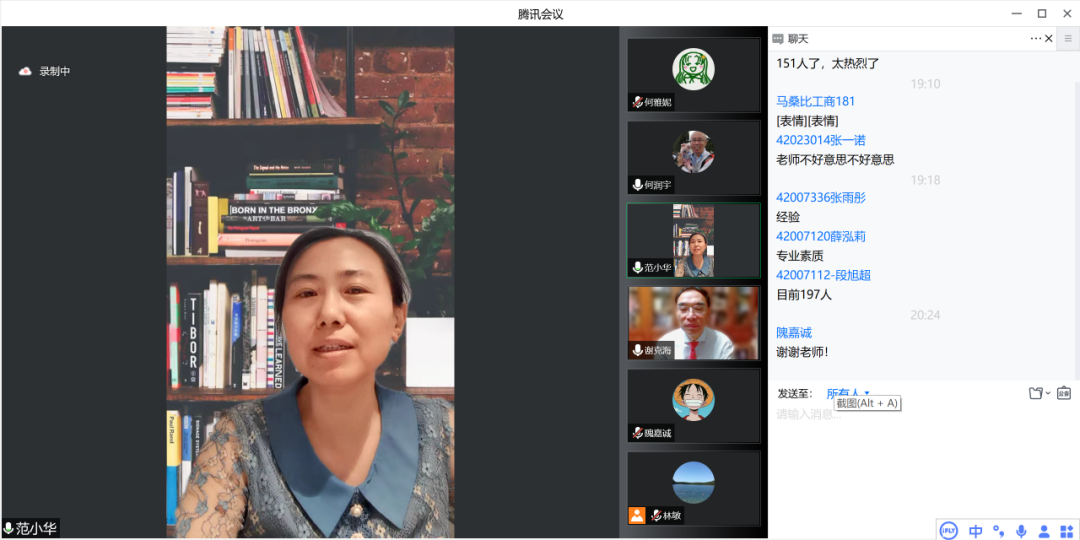 7月19日,探花视频 工商管理系举办认识实习讲座,方正集团总裁兼CEO、北大光华管理学院管理实践教授谢克海先生主讲了题为“职场胜任力:大学生职业素质培养”的线上讲座。探花视频 副院长范小华老师、工商管理系系主任张剑老师、工商201班班导师林敏老师出席此次会议,何润宇老师主持了会议。本次讲座共吸引了探花视频 20级的217名师生参加,大家与谢克海教授积极互动,就讲座内容展开了激烈讨论,并对自己的职业素养培训与检验进行了深入的思考,收获良多。
