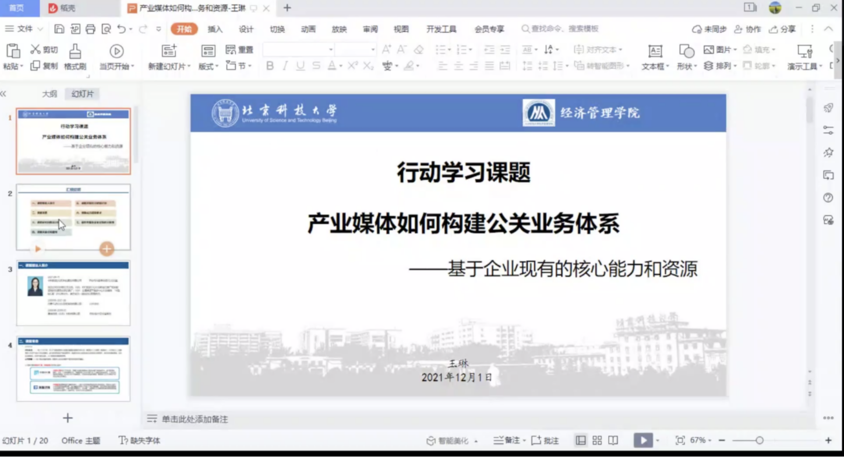 最后,经管学院副院长范小华老师对此次会议进行了总结发言,并代表全体参与活动的老师做出承诺:开放心态做教学改革,勇于探索、积累经验,坚定践行高质量、严要求的教学初心,真正实现知识与实际结合,站在新起点上,打造北科行动学习项目的标杆。同时对参与同学以“兴趣驱动、自主实践、重在过程”为原则,积极鼓励同学们参与本次行动学习实践项目,强化学生的创新创业实践,培养学生独立思考、善于质疑、勇于创新的探索精神和敢闯会创的意志品格,提升北科MBA学员商业实战能力。