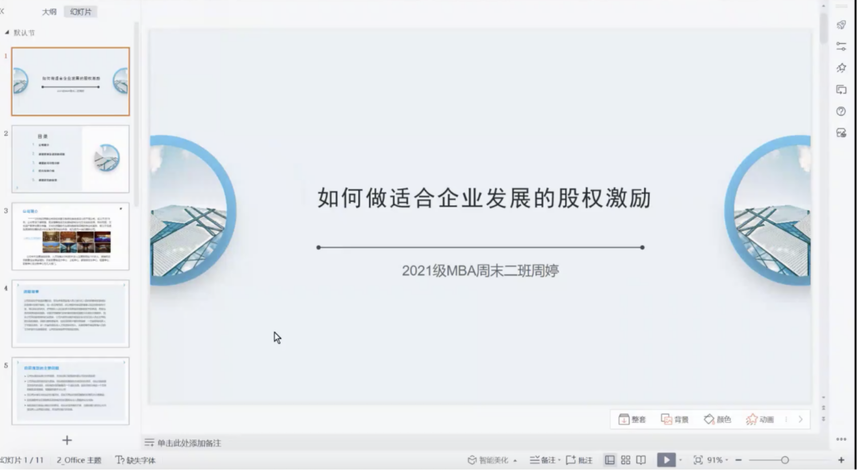 股权激励作为员工激励的重要手段,在目前的企业管理中受到高度关注,也是很多MBA学员在自身企业管理中面临的问题,此次周婷同学带来的“股权激励”项目恰逢其时,参会学员希望就股权激励形式与企业发展阶段的适配性联合产出模板性解决方案,在本企业中试行。