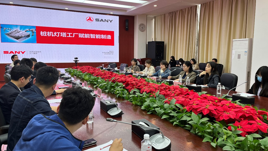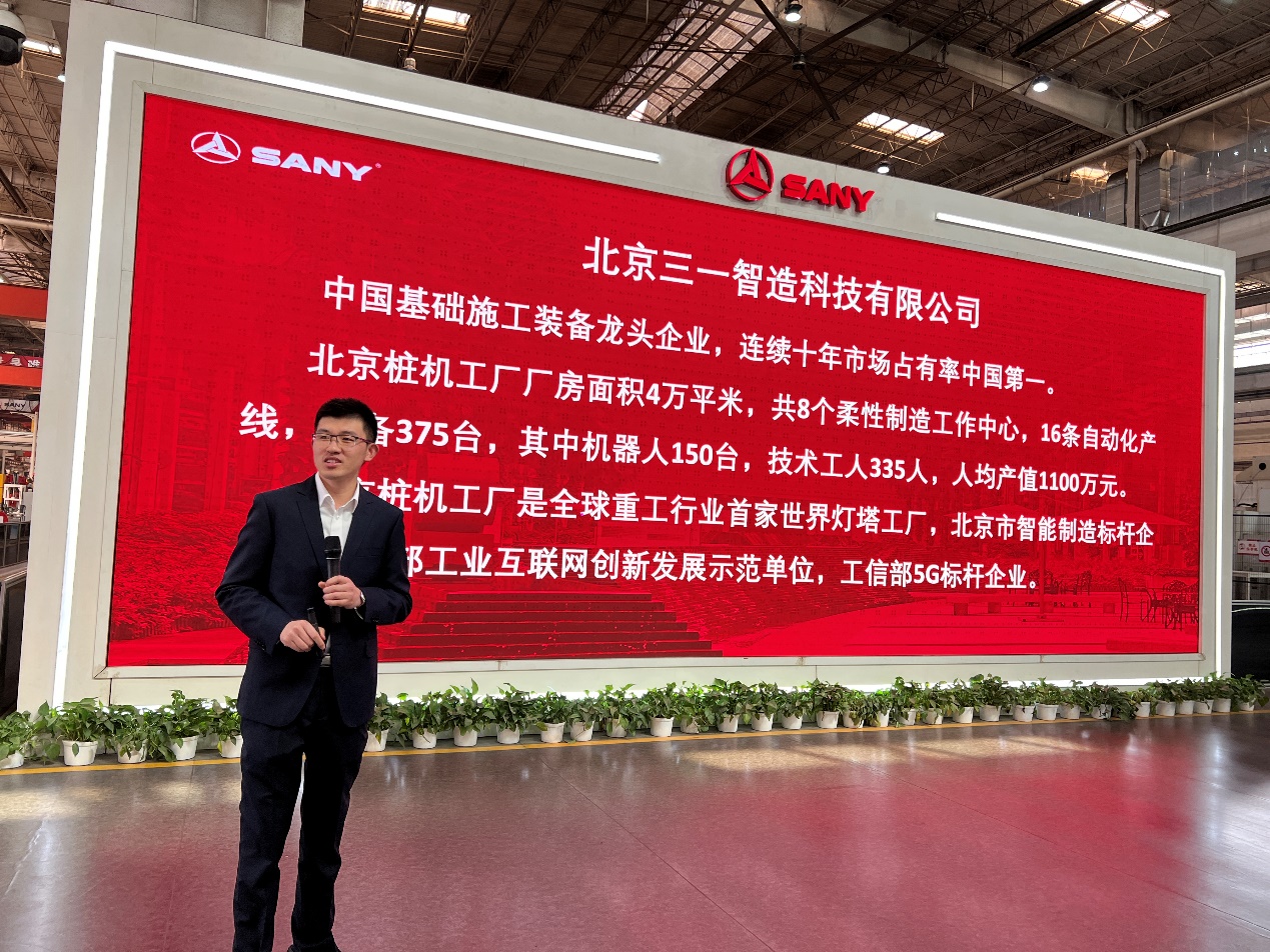 在抵达三一集团昌平南口工业园后,三一集团北京公司副总经理吴志杰对集团创业历程、里程碑事件、标杆项目、重大技术突破等进行了逐一介绍,并详细介绍了三一集团在数智化转型方面所取得的成就,以及在产业赋能方面运行的机理和成绩。