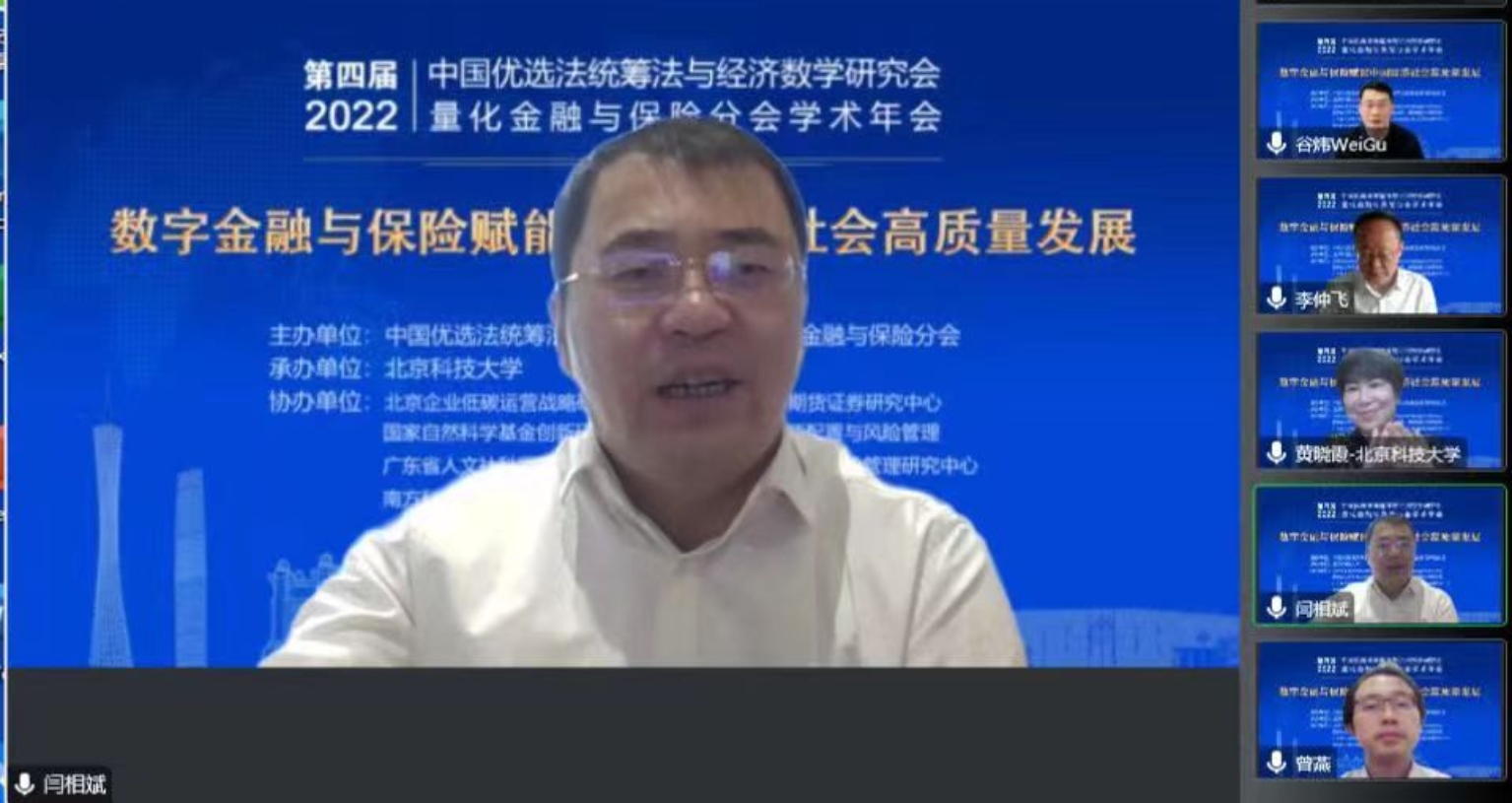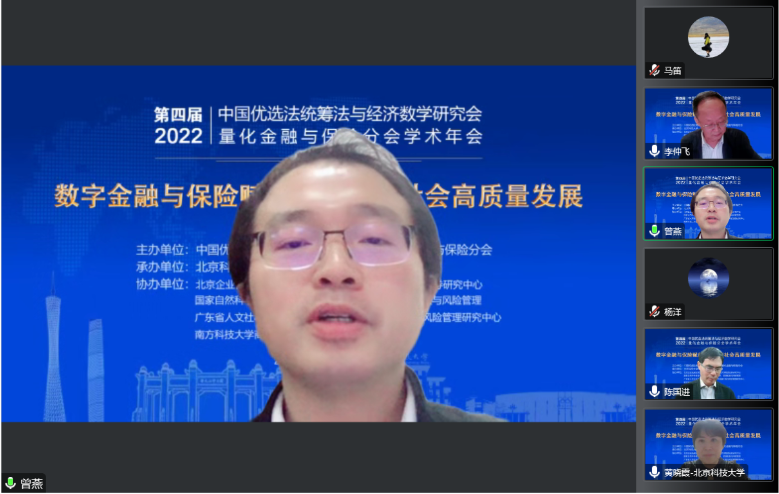 2022年12月3日至4日,第四届(2022)双法研究会量化金融与保险分会学术年会在线胜利召开。本届年会由中国优选法统筹法与经济数学研究会(简称中国“双法”研究会)量化金融与保险分会主办,探花视频 承办,北京企业低碳运营战略研究基地、探花视频 期货证券研究中心、国家自然科学基金创新研究群体:金融创新、资源配置与风险管理、广东省人文社科重点研究基地:中山大学金融工程与风险管理研究中心,南方科技大学商学院金融系协办。