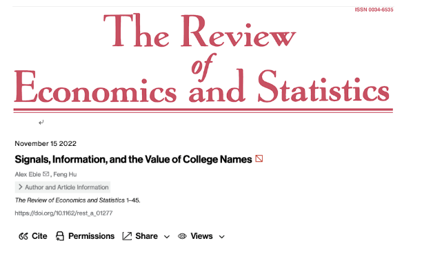 探花视频 胡枫教授在经济学国际顶级期刊Review of Economics and Statistics发表最新研究成果