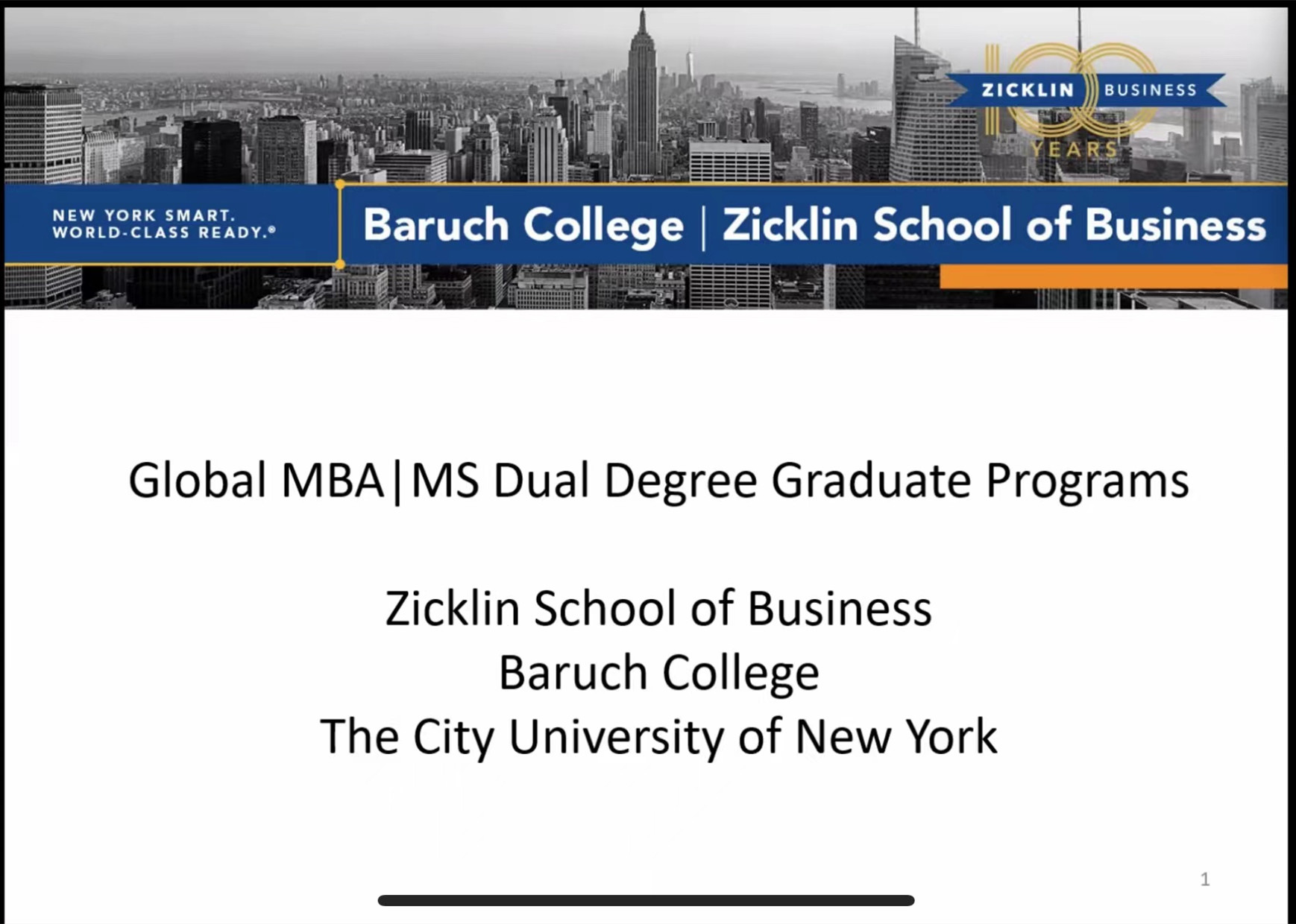 探花视频 —纽约市立大学巴鲁克分校杰克林商学院合作双学位项目线上宣讲会顺利举办