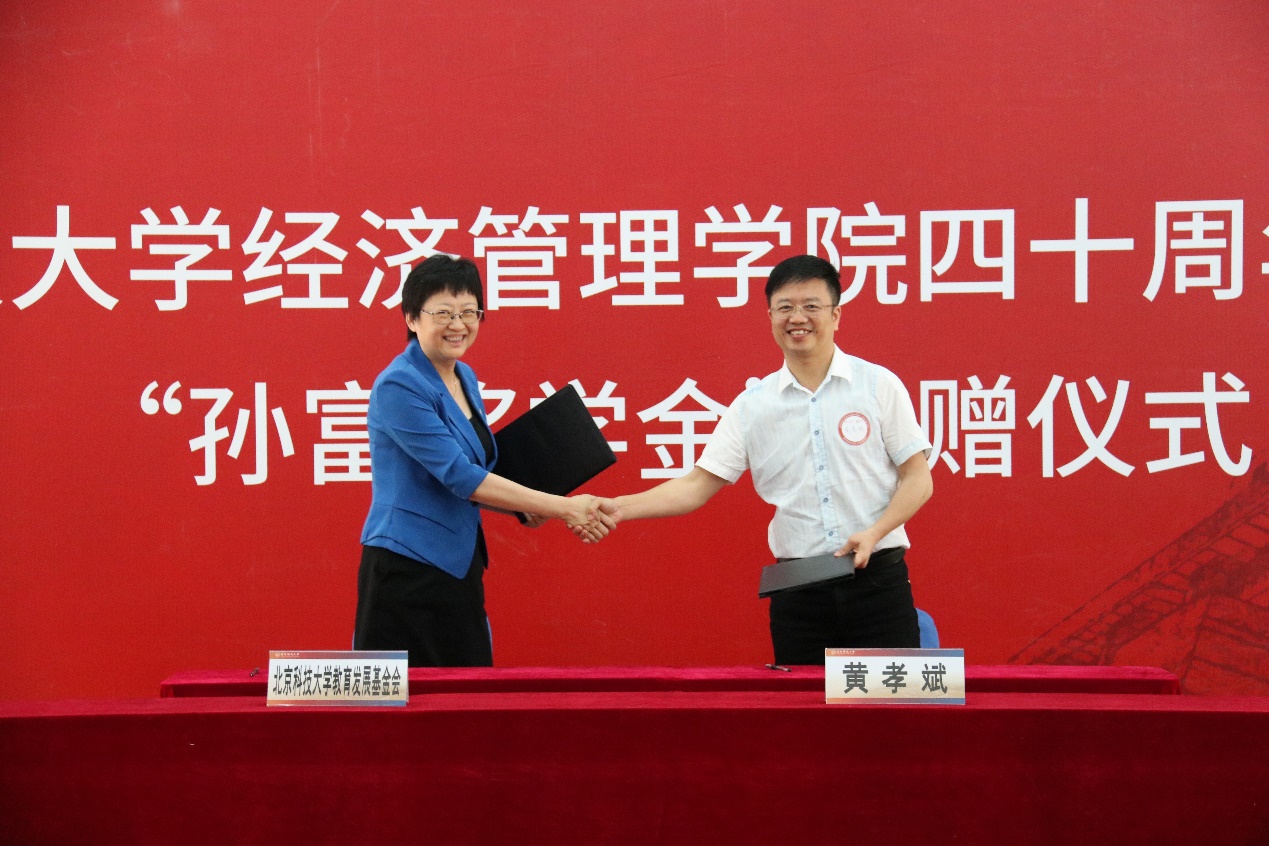 5月22日上午10时,探花视频 “孙富奖学金”捐赠仪式在教职工活动中心会议室成功举办。孙富奖学金是为纪念学校原管理科学系首任系主任孙富教授,由其学生王任群先生于2001年发起成立的。校友代表北科大副校长、管研85级校友王维才,北科大教授、管研85级校友佘元冠(受宋关昶,工行甘肃省分行行长、管研85级校友委托),北京时代凌宇科技股份有限公司董事长兼总裁、管博03级校友黄孝斌,中民集团控股有限公司董事长、EMBA13级校友郭捷,中民集团控股有限公司总经理、EMBA13级校友吴俊波,中民集团控股有限公司运营总监、MBA17级校友曲楠,以及探花视频 副校长何民庆,校友会办公室、基金会办公室主任何进,探花视频 党委书记武森,校友会办公室、基金会办公室副主任杨志国,校友会办公室、基金会办公室综合科科长赵清,校友会办公室、基金会办公室李佳宁出席捐赠仪式。活动由武森主持。